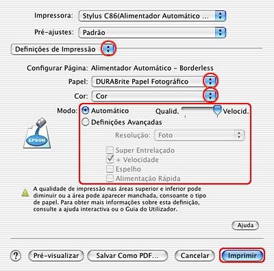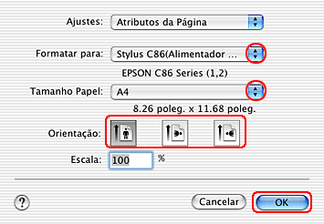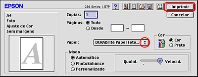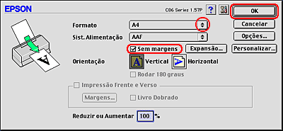 Seleccione Stylus C86 (Alimentador - Sem margens) para a definição Impressora .