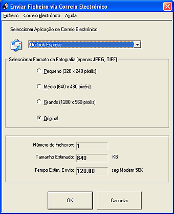 O EPSON Attach To Email permite enviar mensagens de correio electrónico com imagens. Esta aplicação suporta vários sistemas de correio electrónico e permite redimensionar imagens antes de as anexar.