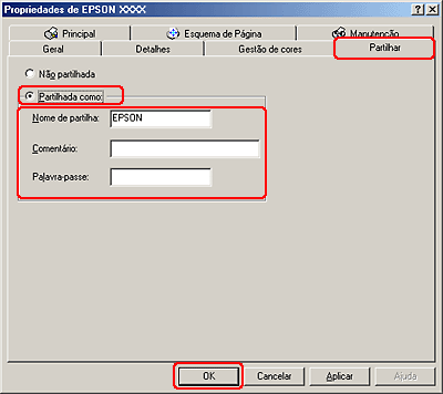 Configurar a impressora como uma impressora partilhada