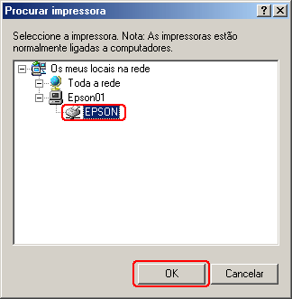 Aceder à impressora através de uma rede