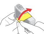 Retire a fita adesiva amarela da parte inferior do tinteiro.