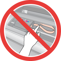 A cabeça de impressão desloca-se e começa a carregar o sistema de projecção de tinta. Este processo demora cerca de dois minutos. Quando o processo de carregamento de tinta terminar, a cabeça de impressão desloca-se para a posição inicial. O indicador luminoso de funcionamento deixa de estar intermitente e permanece aceso e o indicador luminoso da tinta apaga.