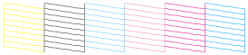 Se as linhas impressas apresentarem falhas, tal como indica a figura, isso pode significar que existem jactos obstruídos ou que a cabeça de impressão está desalinhada.