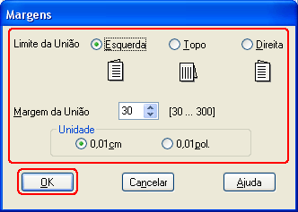 Especifique a margem do papel onde pretende colocar a união. Pode seleccionar de entre as opções Esquerda, Topo ou Direita.