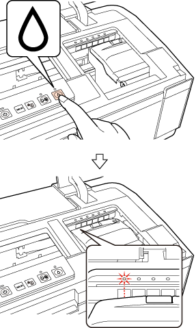 : intermitente, : acesoPara substituir um tinteiro utilizando a tecla