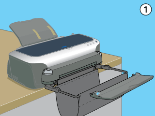 Pode imprimir normalmente com o dispositivo de corte e o receptor de fotografias instalados. No entanto, necessita também de instalar o receptor de papel na impressora. Para instalar o receptor de papel, siga as instruções indicadas em seguida.