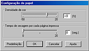 Para ajustar a densidade de cor e o tempo de secagem da tinta, faça clique em Config. Papel na caixa de diálogo Avançado. A caixa de diálogo Configuração do papel abre-se.