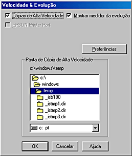 Para modelos de impressoras que utilizem a porta paralela, pode aumentar a velocidade de transferência de dados, seleccionando Porta da impressora EPSON.
