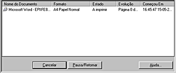 O Gestor EPSON é semelhante ao gestor de impressão do Windows. Se receber duas ou mais tarefas em simultâneo, o gestor armazena as tarefas por ordem de chegada (nas impressoras de rede este procedimento denomina-se fila de impressão). Quando uma tarefa de impressão atinge o topo da fila de impressão, o Gestor EPSON envia a tarefa para a impressora. Através do Gestor pode visualizar informações sobre o estado das tarefas de impressão que foram enviadas para a impressora. Pode também cancelar, interromper e retomar tarefas de impressão seleccionadas.