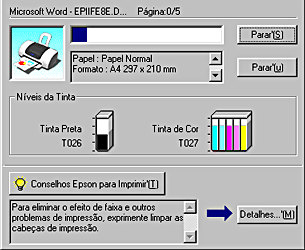 O EPSON StatusMonitor controla a impressora. Se detectar um erro na impressora, este utilitário informa-o através de uma mensagem de erro.