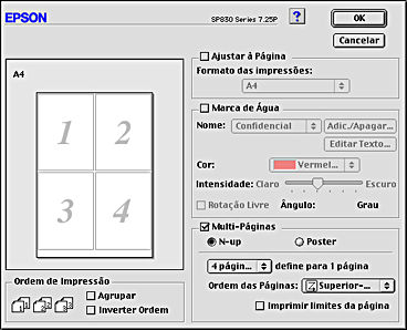 Imprime duas ou quatro páginas do documento numa única folha de papel. |
