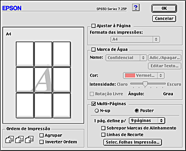 Se activar a opção Multi-páginas, pode seleccionar a definição N-up ou Poster. Consulte a secção adequada.