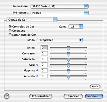 Seleccione a opção de Gestão de Cor no menu emergente para controlar a correspondência de cores e os métodos de ajuste incluídos no controlador da impressora.