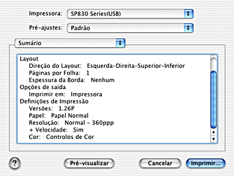 Na caixa de diálogo Imprimir, com a opção Sumário seleccionada, pode confirmar as definições actuais.