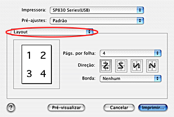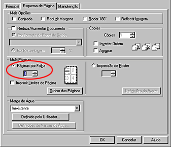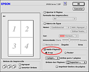 Em Macintosh, active a caixa de verificação Multi-Páginas situada na caixa de diálogo de esquema e, em seguida, seleccione N-up.