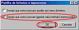 Seleccione a caixa de verificação Desejo que outros possam imprimir na(s) minha(s) impressora(s) e faça clique em OK.