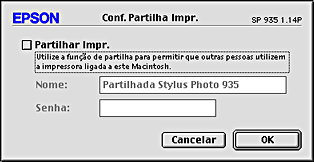 Seleccione a caixa de verificação Partilhar Impr. e, em seguida, escreva o nome da impressora e a palavra-passe, conforme necessário.