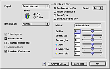 Funções do Software da Impressora / Utilizadores de Mac OS 8.6 e 9.x
