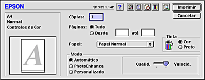 Quando selecciona o modo Automático o software da impressora efectua todas as definições com base nas definições de tipo de papel e tinta seleccionadas.