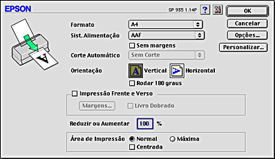 Seleccione o formato do papel que pretende utilizar. Se quiser definir um formato de papel personalizado, consulte Definir um formato de papel personalizado. |