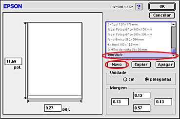 Se o formato de papel adequado não aparecer na lista Formato da caixa de diálogo Definir Página, efectue os procedimentos apresentados em seguida para definir um formato de papel personalizado.