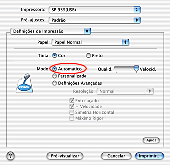 Quando selecciona o modo Automático com a opção Definições de Impressão seleccionada, o software da impressora efectua todas as definições detalhadas com base nas definições de tipo de papel e tinta seleccionadas.