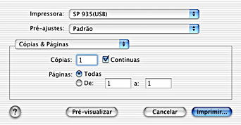 Seleccione Cópias & Páginas no menu emergente e, em seguida, seleccione Todas ou De e a. Se seleccionar De e a, introduza a primeira página do intervalo de páginas apropriado na caixa de texto De e a última página na caixa de texto a.