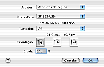 Seleccione a impressora a configurar na caixa de diálogo Configurar Página. |