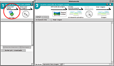 Insira as imagens na área de carregamento de imagens com as áreas de sobreposição lado a lado; caso contrário, não as poderá unir correctamente.
