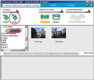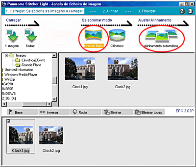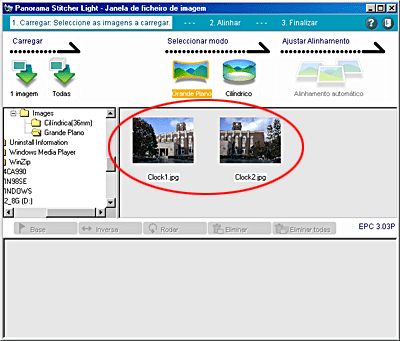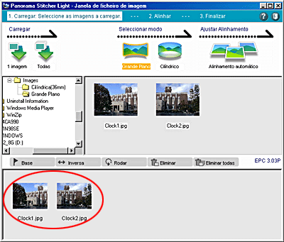 O Panorama Stitcher Light EPC abre e apresenta as imagens existentes na pasta que seleccionou.