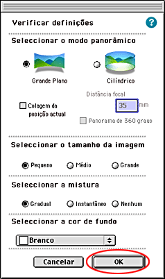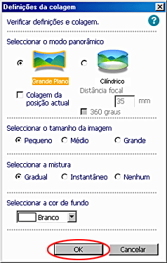 Confirme as definições na caixa de diálogo de impressão do Panorama Stitcher e, em seguida, faça clique em OK.