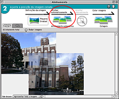 Durante alguns segundos aparece uma mensagem a solicitar que ajuste as imagens o melhor possível com o rato se estas estiverem bastante desalinhadas e, em seguida, as imagens são alinhadas automaticamente. Faça clique na janela da mensagem para a fechar.