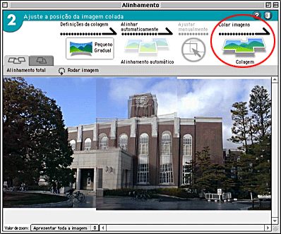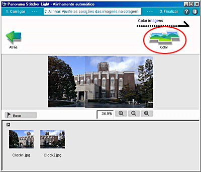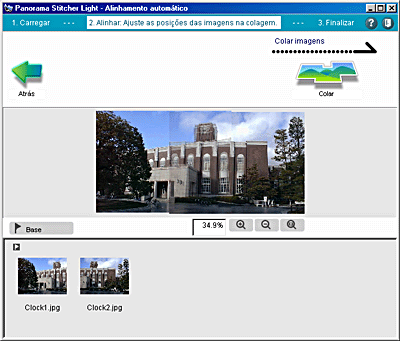 Se nenhuma imagem estiver definida como imagem-base quando tiverem sido carregadas duas imagens, a imagem situada do lado esquerdo na área de carregamento de imagens é assumida como sendo a imagem-base; quando tiverem sido carregadas três ou mais imagens, a imagem situada no centro após a união é assumida como imagem-base.