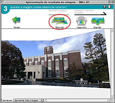 O tamanho da imagem cortada aparece na parte superior da janela de apresentação da imagem de união.