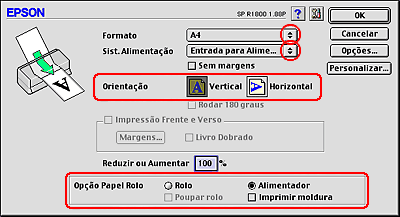 Não seleccione Folha como definição de sistema de alimentação quando tiver colocado papel em rolo na entrada para alimentação manual posterior. Se o fizer, haverá uma alimentação de papel desnecessária após cada impressão. Se já tiver começado a imprimir, cancele a impressão a partir do software da impressora.