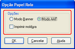 Efectue as definições de opções apropriadas na caixa de diálogo Opção Papel Rolo.