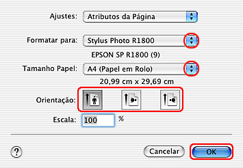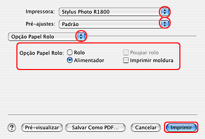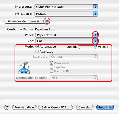 Seleccione Stylus Photo R1800 para a definição Impressora.