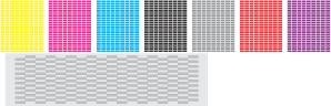 Quando o indicador luminoso de funcionamento deixar de estar intermitente, faça clique na tecla Confirmação da caixa de diálogo de limpeza das cabeças para imprimir um modelo de verificação dos jactos. Utilize o modelo de verificação para confirmar se a cabeça de impressão está limpa.
