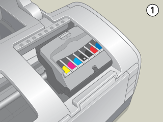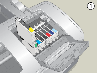 As figuras apresentadas são relativas à substituição do tinteiro de tinta amarela. Substitua o tinteiro adequado à situação.