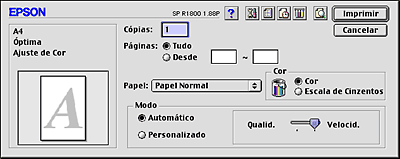 Quando selecciona o modo Automático , o software da impressora efectua todas as definições pormenorizadas com base nas definições de tipo de papel e tinta seleccionadas.