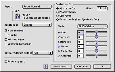 Faz corresponder as cores da impressão às cores apresentadas no ecrã de acordo com as informações armazenadas no perfil seleccionado. O perfil padrão da EPSON é um perfil personalizado que funciona com a impressora que está a utilizar.