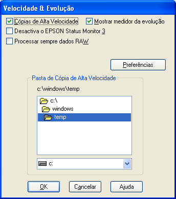 Para imprimir rapidamente várias cópias do documento, seleccione Cópias de Alta Velocidade. Esta função acelera a impressão utilizando o espaço em disco como memória cache para imprimir várias cópias do documento.