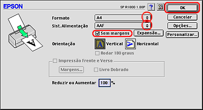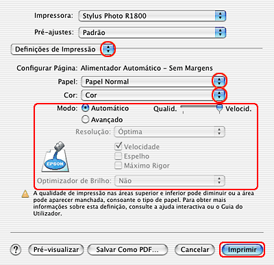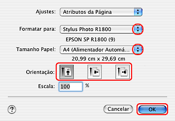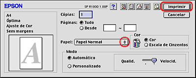 Seleccione Stylus Photo R1800 para a definição Impressora.