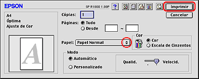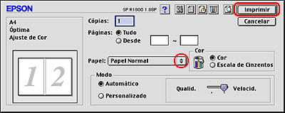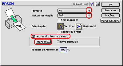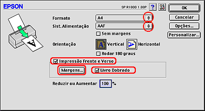 Impressão frente e verso normal em Mac OS 9