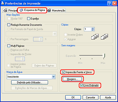 Seleccione a caixa de verificação Impressão frente e verso. Em seguida, seleccione a caixa de verificação Livro Dobrado.