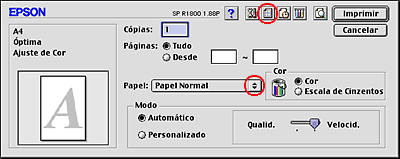 ![]() | Seleccione Stylus Photo R1800 para a definição Impressora. |