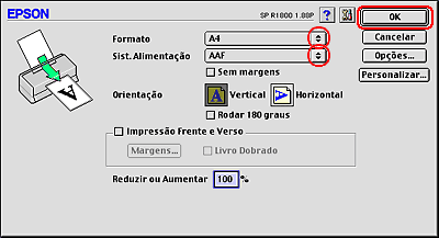Esta função não está disponível quando seleccionar a caixa de verificação Sem margens no menu Principal (Windows) ou na caixa de diálogo Definir Página (Mac OS 9).