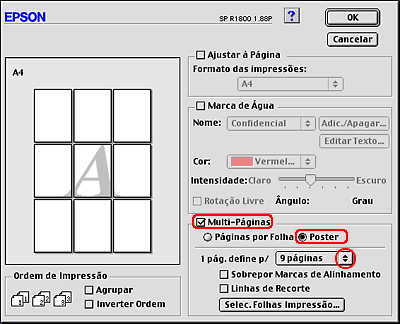 Seleccione a caixa de verificação Multi-Páginas na caixa de diálogo Esquema e, em seguida, seleccione Poster.