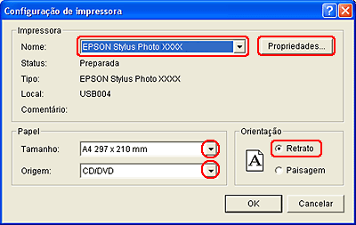 Seleccione A4 (CD/DVD) para a definição Formato.