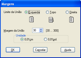 Especifique a margem do papel onde pretende colocar a união. Pode seleccionar de entre as opções Esquerda, Topo ou Direita.